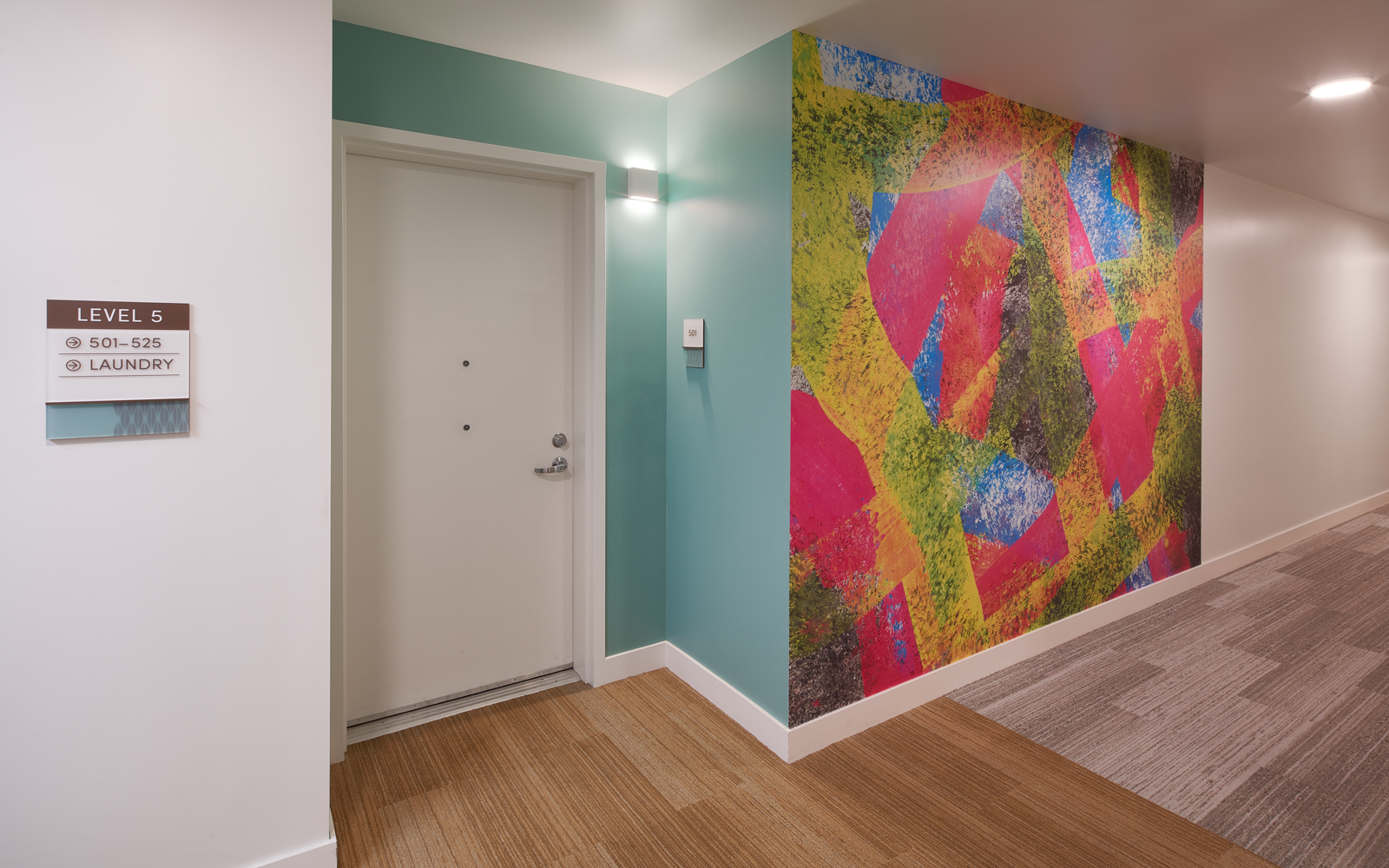 To bring the brand to life throughout the environment, we designed a comprehensive signage and wayfinding system making the homes, clinic, and public spaces intuitive and inviting to navigate. A curated artwork program introduces vibrant, site-specific murals celebrating Excelsior culture, while custom interpretive displays honor the site’s nearly century-long history as a family-run local business. Together, these elements create a connected, uplifting resident experience and strengthen the property’s role as a meaningful neighborhood resource.